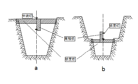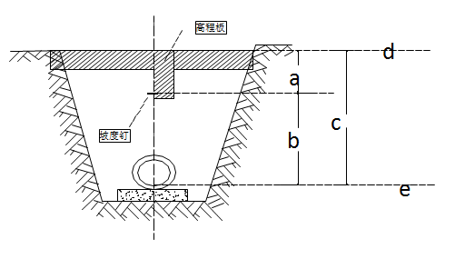 為控制溝槽開挖的深度,要測量出坡度板板頂?shù)母叱獭0屙敻叱膛c相應(yīng)的管底設(shè)計高程之差,就是從板頂向下挖土的深度。