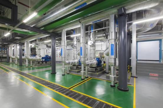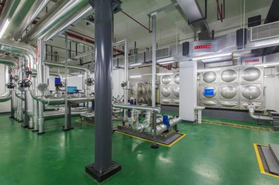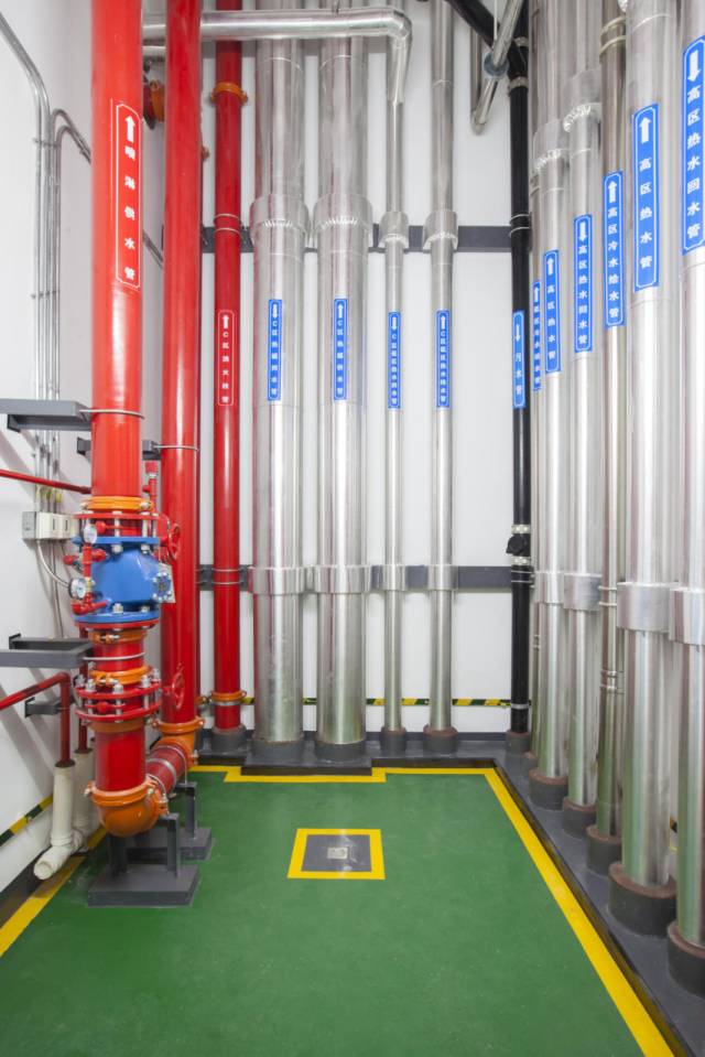 空調(diào)換熱機(jī)房布局合理,設(shè)備運(yùn)行可靠,支架安全、可靠、大氣,標(biāo)識清晰。