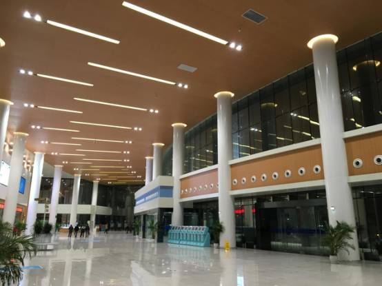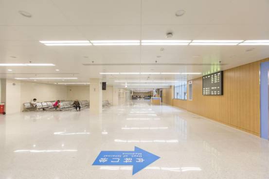 診室候診區(qū)燈具、噴頭、風(fēng)口、煙感排布精細(xì)美觀,橫成排、豎成行、斜成線,錯落有致。