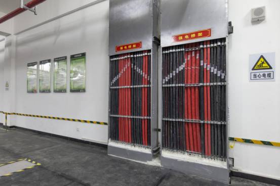 豎向橋架內(nèi)電纜排布有序,標(biāo)識清晰,防火封堵到位。