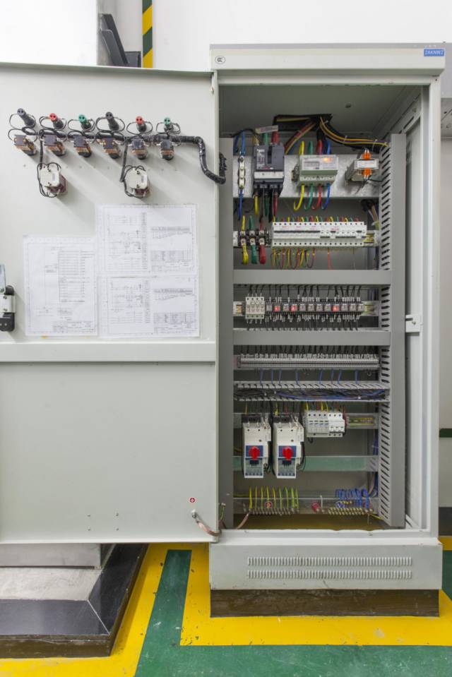 配電房內(nèi)配電柜安裝高度一致,成排成線。