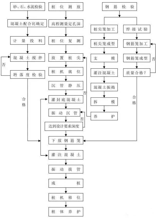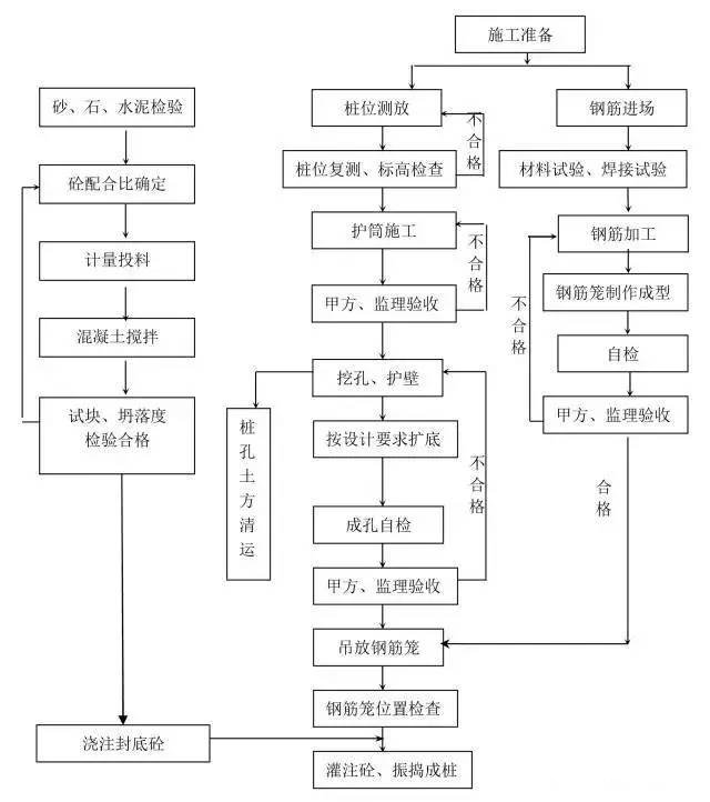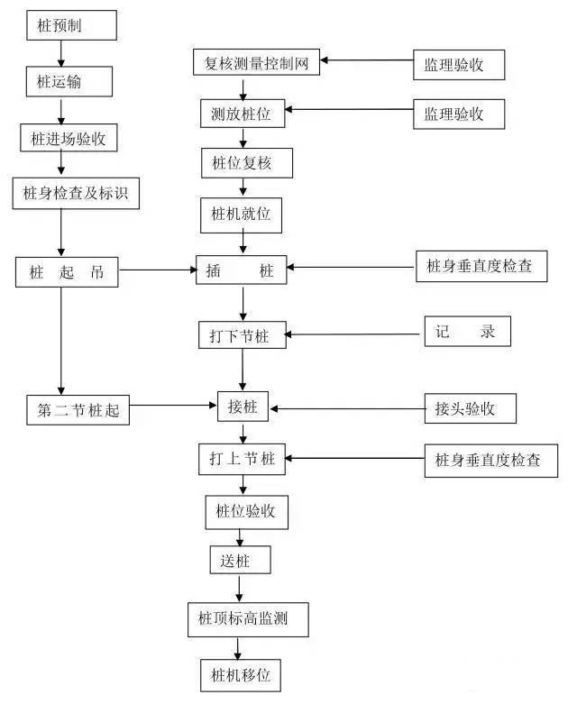 樁基是壹種古老的基礎(chǔ)型式。樁工技術(shù)歷經(jīng)了幾千年的發(fā)展過程。無論是樁基材料和樁類型,還是樁工機(jī)械和施工方法等都有了巨大的發(fā)展,已形成了現(xiàn)代化基礎(chǔ)工程體系。在有些情況下,采用樁基能大量減少施工現(xiàn)場工作量與材料之消耗。由于樁基種類繁多,施工工藝差異大,在此總結(jié)整理十四種樁基施工流程圖,僅供對比參考之用。