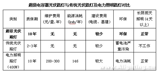 (一)傳統(tǒng)光伏路燈采用鉛酸蓄電池等電池,一般這種電池具有壽命短,陰雨天不能充電,重金屬對(duì)環(huán)境污染大等缺點(diǎn)。本項(xiàng)目使用的儲(chǔ)能電源為我公司專門為太陽(yáng)能光伏道路照明設(shè)計(jì)生產(chǎn)的新型能量型超級(jí)電容器模組,該模組循環(huán)壽命長(zhǎng)(可達(dá)2萬多次),可以實(shí)現(xiàn)連續(xù)陰雨天(>15天)充放電,因此能夠保證在連續(xù)陰雨天的情況下也能正常供電提供照明,不會(huì)影響整個(gè)路燈的正常工作,而且該種儲(chǔ)能模組節(jié)能環(huán)保無污染。