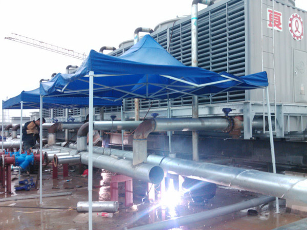 圖為管道焊接及冷卻塔設(shè)備安裝