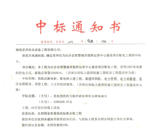 “尊敬的湖南星澤 機(jī)電工程有限公司,很高興地通知您......"