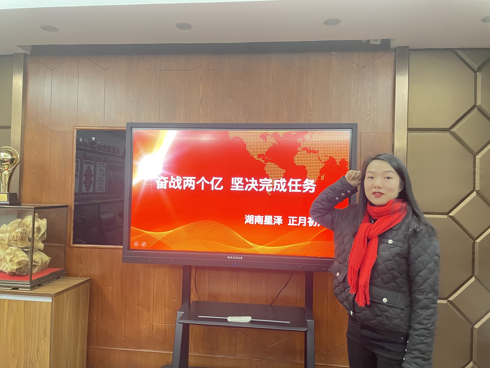 正月初八我們開工啦!伴隨著雄壯的國歌聲,湖南星澤 公司2023年新年茶話會正式開場,茶話會上公司宋總為每位員工派發(fā)了新年紅包,每位參會人員分享了一個勵志或是正能量的故事,公司總經(jīng)理孫總致新年賀詞并提出新年展望定下公司新年的奮斗目標(biāo),2023年公司的業(yè)績目標(biāo)為兩個億,每位員工各分得業(yè)績?nèi)蝿?wù),并紛紛上臺宣誓言。
