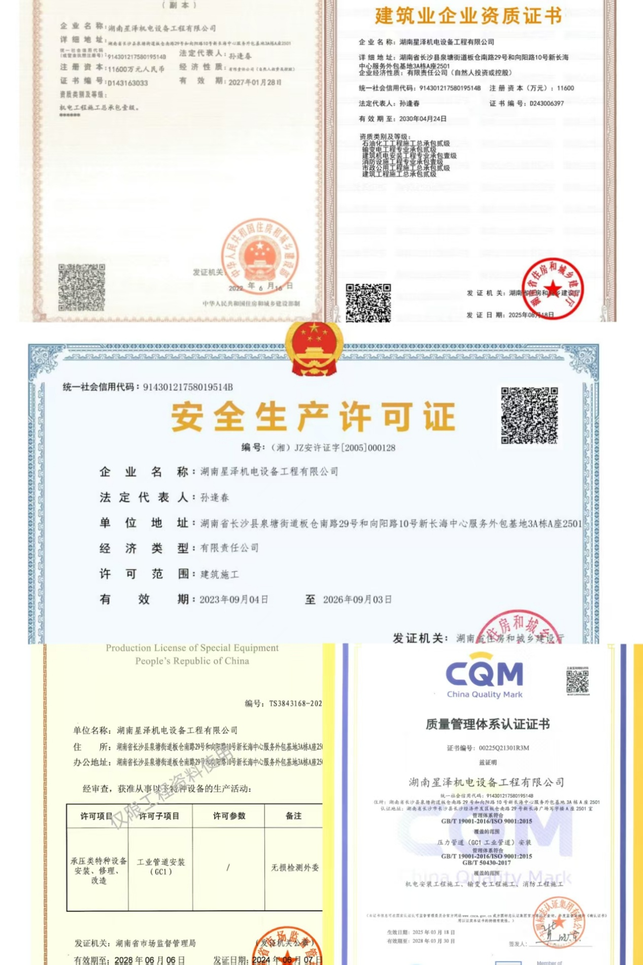資質(zhì)是企業(yè)實(shí)力的 “通行證”,更是市場信任的 “定心丸”。此次圓滿完成資質(zhì)延續(xù),不僅是對星澤機(jī)電過往業(yè)績與專業(yè)能力的高度認(rèn)可,更是公司未來發(fā)展的新起點(diǎn)。未來,星澤機(jī)電將以此次資質(zhì)升級(jí)為契機(jī),充分發(fā)揮多領(lǐng)域高等級(jí)資質(zhì)的協(xié)同優(yōu)勢,在機(jī)電安裝、消防工程、壓力管道、市政建設(shè)等領(lǐng)域持續(xù)深耕,不斷提升工程質(zhì)量與服務(wù)水平,為客戶提供更優(yōu)質(zhì)、更高效的工程解決方案,同時(shí)積極參與區(qū)域基礎(chǔ)設(shè)施建設(shè)與產(chǎn)業(yè)升級(jí)項(xiàng)目,以實(shí)際行動(dòng)助力湖南乃至全國工程建設(shè)行業(yè)的高質(zhì)量發(fā)展,書寫星澤機(jī)電更加輝煌的新篇章!