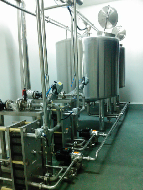 罐體為上下封頭型(封頭均經(jīng)旋壓加工),設(shè)有夾層。采用軸向流攪拌,內(nèi)表面采用電解鏡面拋光。罐體頂部設(shè)進(jìn)水口、加料口、回流口、消毒口、清洗球、人孔,并安裝0.22μm空氣呼吸器及攪拌系統(tǒng)。罐體底部設(shè)出水口、排污口、取樣口、溫度探頭、液位傳感器。配控制柜操作。
