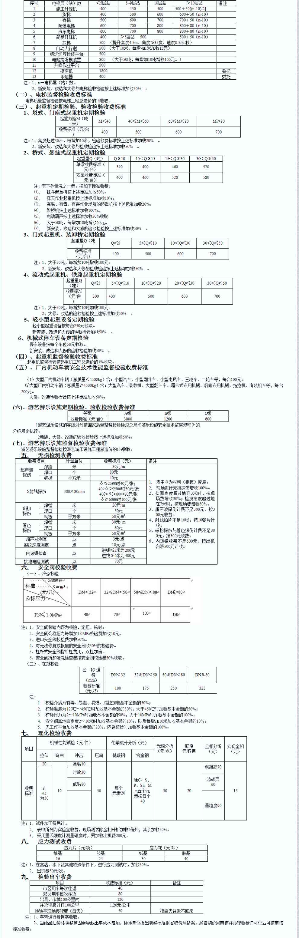 特種設(shè)備檢驗(yàn)檢測收費(fèi)項(xiàng)目及標(biāo)準(zhǔn)的通知
