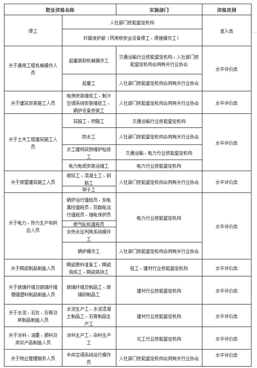 住建領(lǐng)域技能人員職業(yè)資格