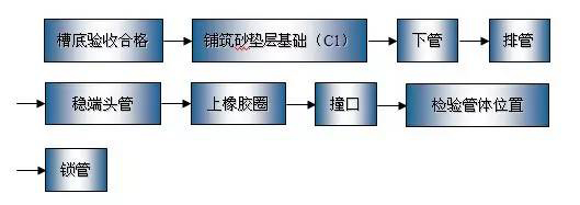 管材放入溝槽→接口→部分回填→試壓→全部回填。